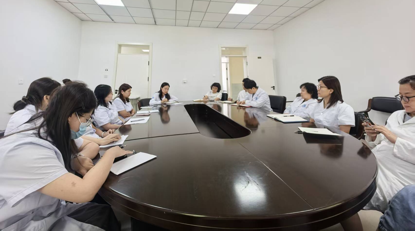 会议首先由王姝副院长系统总结暑期工作成效,随后重点传达学校迎新工作协调会最新要求,结合新生实际需求部署三项核心任务:一是新生报到期间设立医疗咨询点并配备应急药品;二是军训全程派驻医务人员防控中暑与运动损伤;三是初步确定新生体检事项,确保体检工作有序实施。同时,会议就临时医生聘用名单、医生进修计划及本学期劳育课排课安排进行通报。